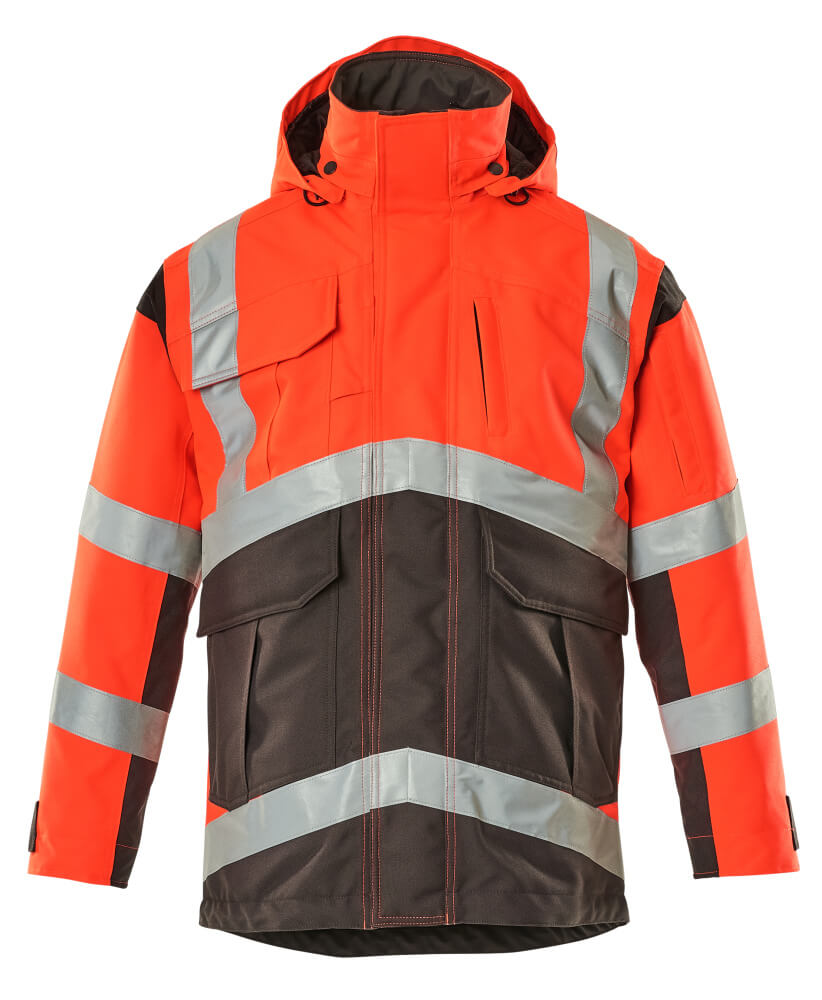 Fluoreszkáló, függőleges és ferde, keresztirányú fényvisszaverő csíkokkal. Kétszínű. Légáteresztő, szél- és vízálló. Taped varratok. Levehető bélelt kapucni állítható húzózsinórral. A paplanbélés kicipzározható és külön is használható - bordázott gallérral és zsebekkel. Belső gallér puha, tartós anyagból. Kétirányú cipzárral, dupla viharzárral és rejtett patentokkal záródik. Cippzáras zsebek a viharzár alatt. Mellzseb cipzárral. Mágneses záródású, patentos mellzseb. D-gyűrű. Tolltartó. Elülső zsebek - két nyitott és két patentos zseb. Belső zseb cipzárral. Ergonómiailag formázott ujjak nagy mozgásszabadságot biztosítanak. Cipzáras ujjzseb. Borda (viharrészbe elrejtve) és patentoss rögzítés a mandzsettán. Állítható elasztikus húzózsinór a derékon. A mágneses termékeket nem használhatják pacemakerrel/ICD-vel vagy hasonló eszközökkel rendelkező személyek a mágneses reakció veszélye miatt, mivel a mágnesek elhelyezésének helyén mágneses reakciót okozhatnak.