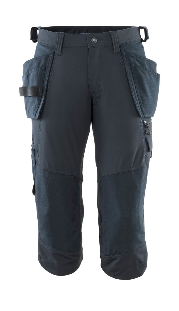Vízlepergető bevonattal rendelkezik. Ultimate stretch anyag, amely könnyű és rendkívül tartós. Az anyag alig érezhető a bőrön, mivel a zsebek a kialakításba vannak integrálva. Dupla varrás a lábszáron és az ágyékon. Alacsony derékrész. Övhurkok. Ergonomikusan kialakított nadrágszár. Cipzáras slicc. Elülső zsebek. Hátsó zsebek. Szerszámpánt a derék mindkét oldalán. CORDURA® anyagból készült pisztolytáskák. Combzseb mágneses rögzítésű telefonzsebbel és beépített személyi igazolványtartóval. Levehető személyi igazolványtartó. CORDURA® anyagból készült vonalzó zseb extra zsebekkel. Tartós, szellőző térdvédő zsebek CORDURA® anyagból (500 D). Nyomattal és fényvisszaverővel. Ehhez a modellhez a 00718-100, 50451-916 & 20118-915 térdvédőket ajánljuk. HOSSZÚ típusú térdvédővel együtt az EN 14404 szabványnak megfelelően társ-tanúsított.