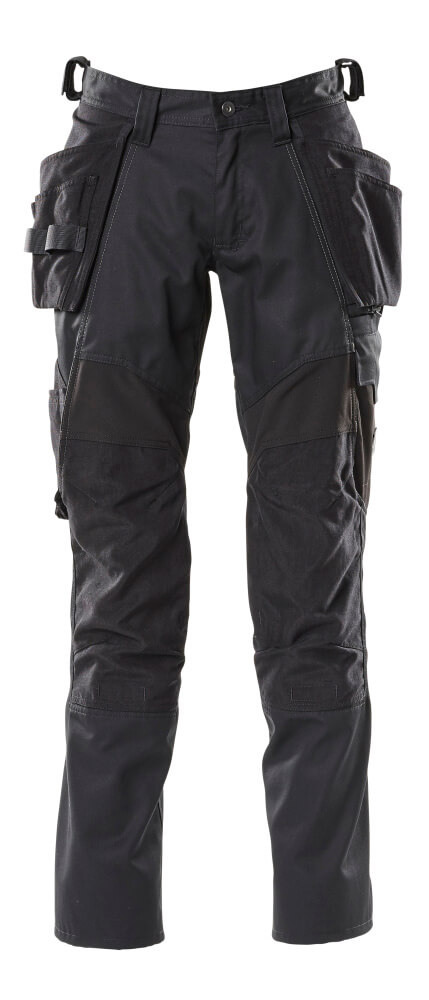 1. Sztreccs Zónák A nadrág nagyon kényelmes viselet, mivel a sztreccs zónák ott helyezkednek el, ahol az aktív munkanapok során extra rugalmasságra van szükséged. A sztreccsbetétek, különösen a térd és a hát alsó részén, nagyobb mozgásszabadságot eredményeznek, különösen térdmunkánál.