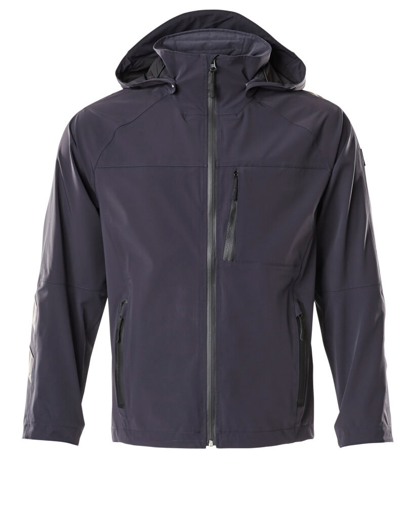 Ultimate stretch anyag, amely könnyű és rendkívül tartós. Lélegző, szél- és vízálló. Taped varratok. Rögzítés vízálló cipzárral és belső viharzárral. Levehető bélelt kapucni állítható húzózsinórral. Cipzáras mellzsebek. Ergonómiailag formázott ujjak nagy mozgásszabadságot biztosítanak. Cipzáras elülső zsebek. Hosszabbított hátrész. Állítható elasztikus húzózsinór a derékon. Borda (viharrészbe rejtve) a mandzsettán. Fényvisszaverők.