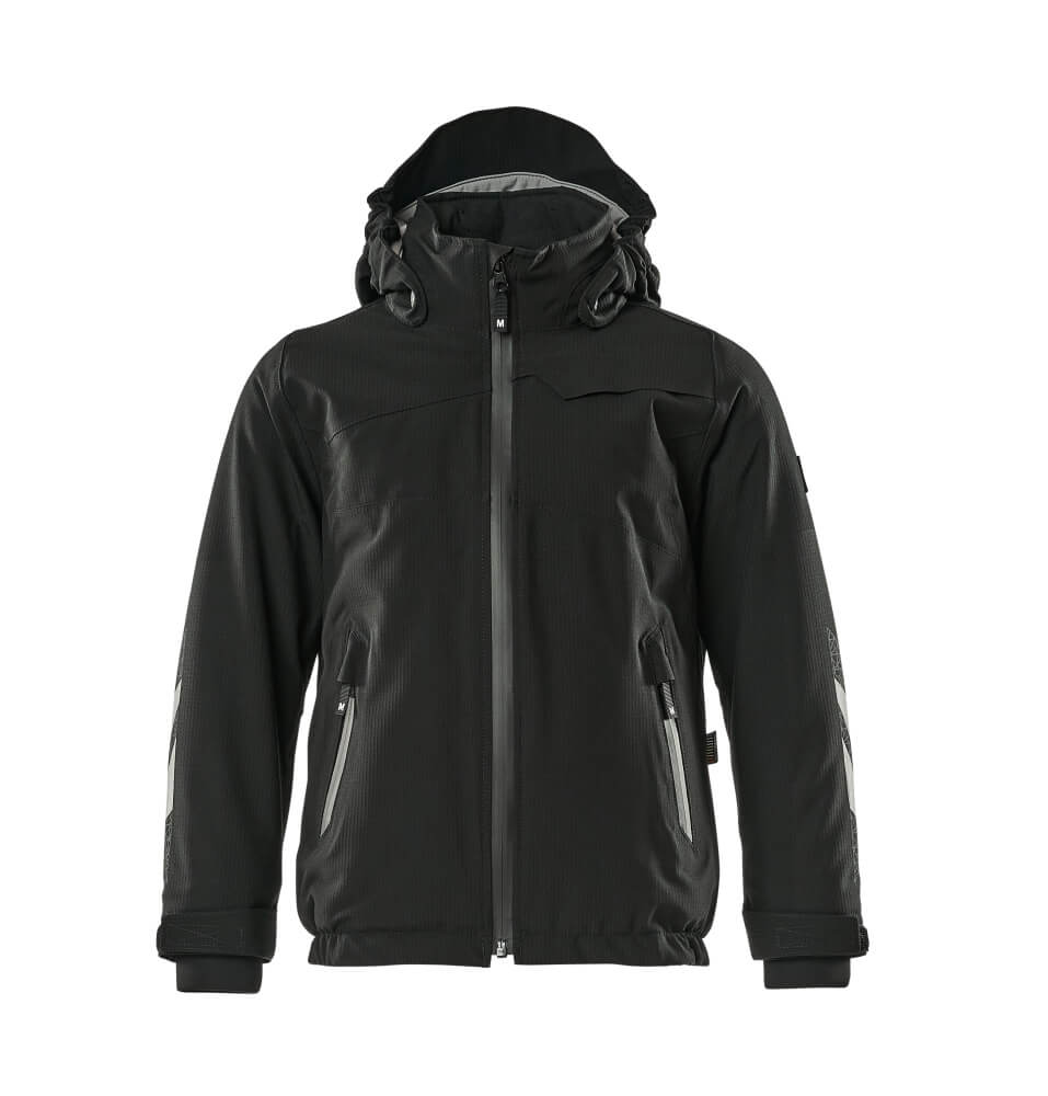 Könnyű anyag. CLIMASCOT® könnyű szigetelés. Szélálló és vízlepergető. Taped varratok. Levehető bélelt kapucni ELASTIC-kal. Cipzárral és belső viharzárral zárható. Elülső zsebek cipzárral. Borda (a viharpántokba rejtett) mandzsetták. Nyomattal és fényvisszaverőkkel.