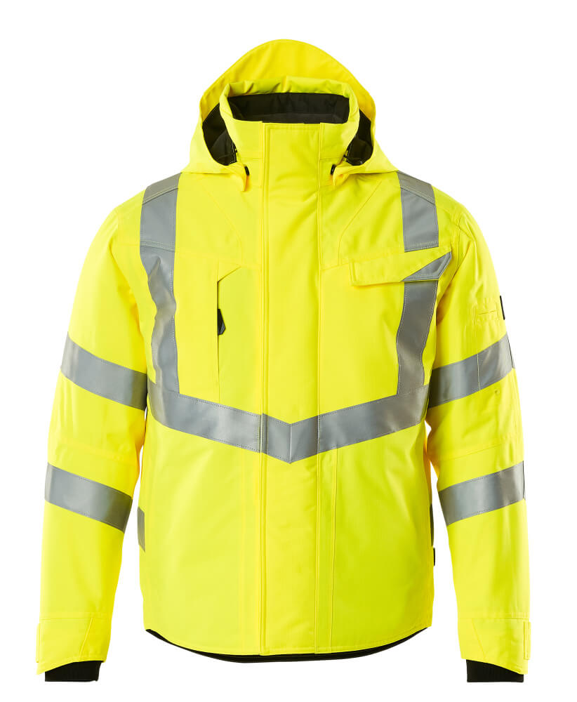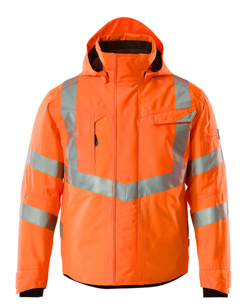 Fluoreszkáló, függőleges és ferde, keresztirányú fényvisszaverő csíkokkal. Lélegző, szél- és vízálló. Taped varratok. CLIMASCOT® könnyű szigetelés. Párnázott. Steppbélés az ujjakban. Magas gallér. Bordázott belső gallér. A levehető bélelt kapucni a húzózsinórral a sisak fölé igazítható. Állítható drót a kapucni mindkét oldalán. Cipzárral és nyomógombos viharzárral zárható. Cipzáras belső zsebek a viharpántok alatt - az egyiket kifejezetten a mobiltelefon számára tervezték, lyukakkal a fejhallgató vezetékének és vezetőhurokkal, hogy a vezeték hozzáférhető maradjon. Cipzáras zseb a viharpántok alatt, amely elég nagy egy 9,4 hüvelykes táblagép befogadására. Cipzáras mellzseb. Mellzseb patenttal és nyomógombbal. D-gyűrű. Ergonomikusan kialakított ujjak nagy mozgásszabadságot biztosítanak. Elülső zsebek cipzárral. Belső húzózsinórral történő beállítás a csípőnél. Hátul alul cipzár a logó nyomtatásához/hímzéséhez. Hosszabbított hátrész. Vízálló tolltartó zseb. Borda (viharkárpitba rejtett) mandzsetták. CORDURA® anyaggal megerősített mandzsetták patentos rögzítéssel.
