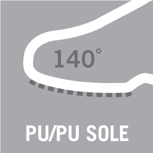 - Ütéscsillapító, puha és rugalmas kétkomponensű PU/PU talp.