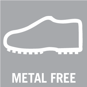 Fémmentes Az ezzel a szimbólummal ellátott lábbelik nem tartalmaznak fémet. A középtalp, a kapli és a fűzőlyukak teljesen fémmentesek. Mint ilyen, a lábbeli nagyon hasznos például a repülőtereken. -